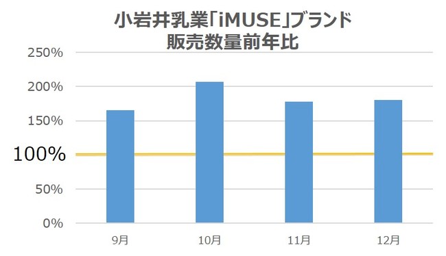 ・「iMUSE」ヨーグルト群は、健康意識、免疫ケア意識の高まりとともに、習慣的に摂取・購入いただくお客様が増加しました。また昨年9月に新発売した低脂肪タイプや、リニューアルした商品群も高く評価いただき、10月以降はスーパーマーケットでの取り扱いも増加しました。