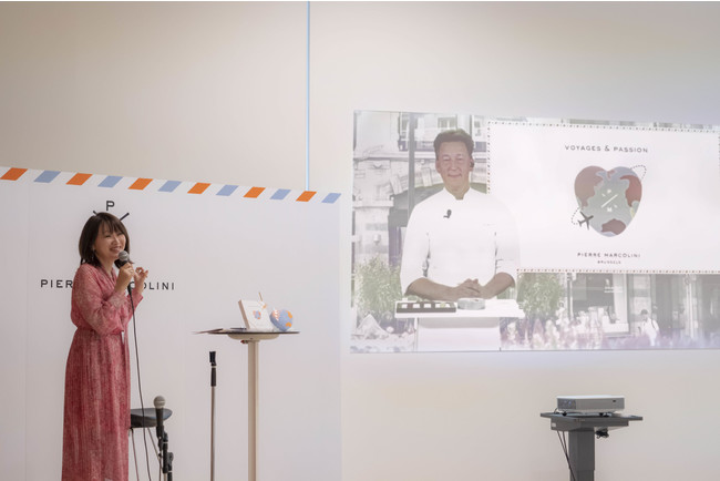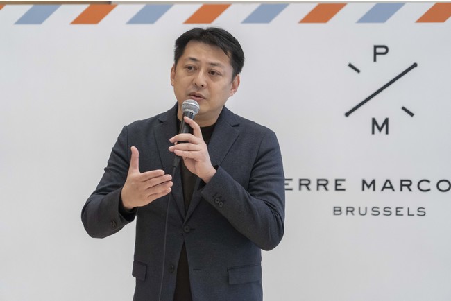 発表会は、株式会社PIERRE MARCOLINI JAPAN 代表取締役の蒲田考一による挨拶からスタート。「PIERRE MARCOLINI JAPANは2021年10月に立ち上げ、今年のバレンタインではこれまで以上に日本の皆様にベルギー本国の味をお届けする体制が整いました。新型コロナウイルスにより世界を旅することが出来ない状況下で、チョコレートを通じて世界各国を飛び回っていただきたいという想いでバレンタインコレクションをお届けします。そして、本コレクションを皮切りに、春・夏・秋・冬と様々な新商品やプロモーションを仕掛けて参ります。」と話しました。