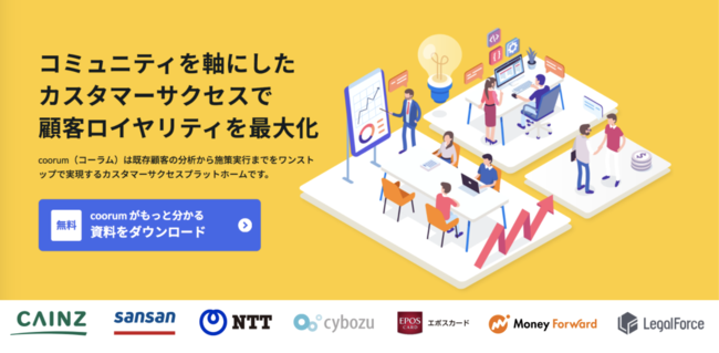coorum(コーラム)は、既存顧客の分析から施策実行までをワンストップで実現するカスタマーサクセスプラットホームです。「企業と顧客がつながる場」の提供によって多くのファンが生まれ、LTVの最大化を実現します。