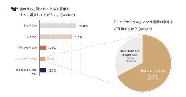 - アップサイクルという言葉を聞いたことがある人は12.1%、意味までわかる人は8.4%