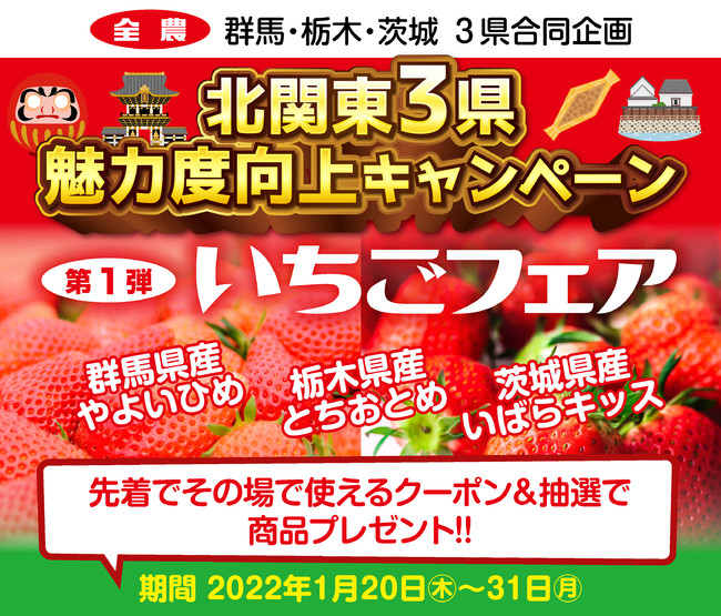 JA全農が運営する産地直送通販サイト「JAタウン」は、1月20日から「北関東3県魅力度向上キャンペーン」を開催します。