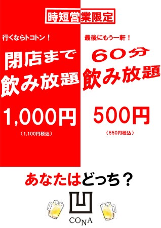 ※飲み放題ご注文の際は、CONAアプリにご登録いただきます。