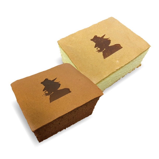 独特の「プルしゅわ」食感で大人気の「つきとうさぎ」の台湾カステラとコラボ!オリジナルで次元の焼き印をお入れしています。たまごの優しい風味が特徴のプレーン味と、甘くて食べやすいチョコレート味をご用意。