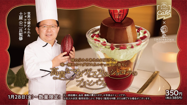 株式会社あきんどスシロー(本社:大阪府吹田市、代表取締役社長:堀江 陽)は、“スシローカフェ部”と日本を代表するショコラティエ「テオブロマ」の土屋氏が監修した、バレンタインにおススメの「高貴なマダガスカルショコラのプリンパフェ」を、1月28日(金)より全国のスシローにて販売いたします。
