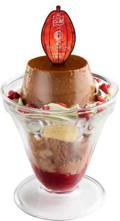また、今回のパフェではなるべくテオブロマの味に近いものを目指しました。それでいて、とてもリーズナブルでボリューム感のある、胸を張って美味しいといえる商品に仕上げました。この商品をぜひお子様、家族連れ、チョコレート好きの人、本当にカカオの味がわかる人に召し上がっていただきたいと思っております。「高貴なマダガスカルショコラのプリンパフェ」を召し上がっていただき、マダガスカルカカオの素晴らしさをこの機会にぜひ味わって下さい。