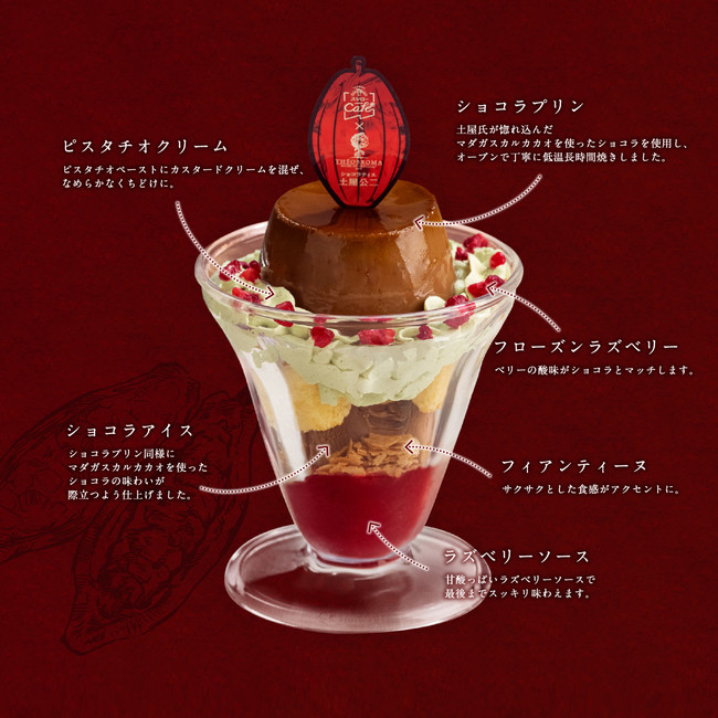 「ミスターカカオ」の異名でも知られる、チョコレート専門店「テオブロマ」の土屋公二氏は、サロン デュ ショコラ パリにおいてCCC(フランスのチョコレート品評会)で外国人部門最優秀味覚賞(2015年)、世界のベストショコラティエ100人に選出(2019年)されるなど名実ともに日本を代表するショコラティエです。この度土屋氏の構想から半年以上かけて共同開発したこだわりのパフェが完成しました。
