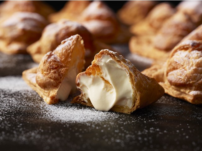 店内のオーブンで焼き上げたサックサクのパイに、北海道産ミルクをたっぷり使った特製のミルククリームをたっぷりと詰め込みました。