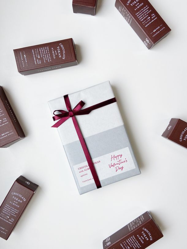 バレンタイン期間中、特別な贈り物としてご利用いただける限定パッケージをご用意しております。和菓子が好きな方や、ご年配の方に向けたギフトにも好適な、世代を問わないシックで落ち着いた雰囲気のパッケージです。