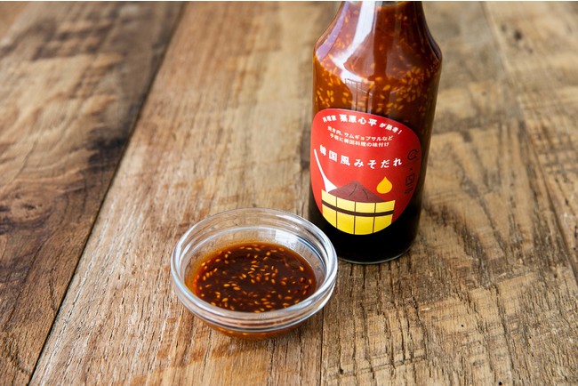 コチュジャンのピリッとした辛みをアクセントに、すりおろし野菜・果物、炒り大豆やごま、八丁みそなどを独自に調合した「韓国風みそだれ」。焼き肉やサムギョプサルのたれ、プルコギをはじめ、韓国料理風の味付けが手軽にかなう調味料です。
