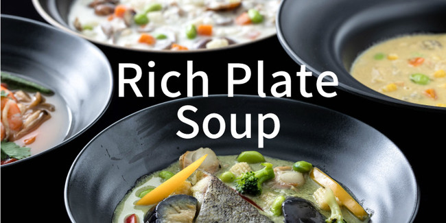 これまでリッチプレートは「おかず」のみの展開でしたが、今回「スープ」と「リゾット」が追加されたことで、主食や副菜として様々なシーンにもご利用いただけるようになりました。
