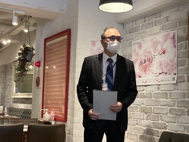 イベントに出席したJA全農ふくれん 園芸部 東京営業所 所長の青柳善磨は、「この寒い時期、博多あまおうはゆっくり大きく育ち、一番美味しい時期を迎えます。」とあまおうの魅力を語り、さらに、 「ぜひこの機会に『博多あまおう』を味わっていただきたいです!『博多あまおう』、『#あまおうエール キャンペーン』で、コロナ禍でも頑張っている方々へのエールを送りたいと思っています。」と話しました。