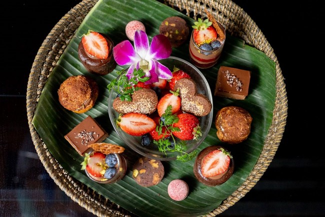 アフタヌーンティーといえば、3段のスタンドに並べられたスイーツを想像されるかと思いますが、BETELNUTでは、モダンアジアンレストランならではのリゾート感溢れるオリジナルの籐の籠に飾り付けしてご提供いたします。スイーツだけでなくバリエーション豊かなセイボリーやDim Sum(点心)が魅力の、唯一無二のアフタヌーンティーを、ぜひご賞味ください。