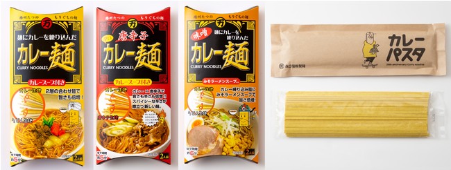 そして昨年、カレー麺(だいたい)20周年記念商品として、デュラム小麦粉にカレー粉を練り込んだ「カレーパスタ」に挑戦。試作を重ね2021年11月に商品化いたしました。