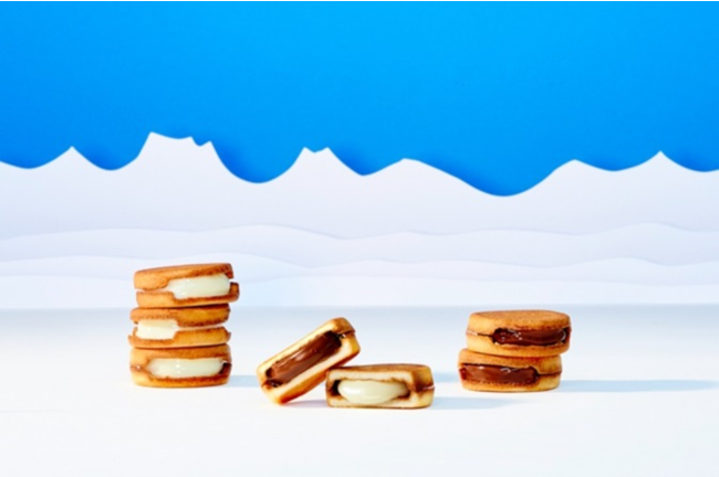 熱した鉄板で挟み焼きすることで生まれる、ラングドシャクッキーのカリカリ感と生チョコレートのなめらかさの両方を実現した、生チョコレートサンドクッキー。生チョコレートには自社の牧場で育てている乳牛から絞った放牧牛乳を使用しています。
