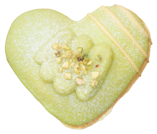 | 『グリーン ピスタチオ』 【販売期間】ハート型:2022年 2月8日(火)~2月14日(月) リング型:2022年 1月12日(水)~2月下旬(予定) ※ハート型販売期間を除く 【販売価格】291円(イートイン297円) パステルグリーンチョコで包んだハートに、ピスタチオクリームをトッピング。 |