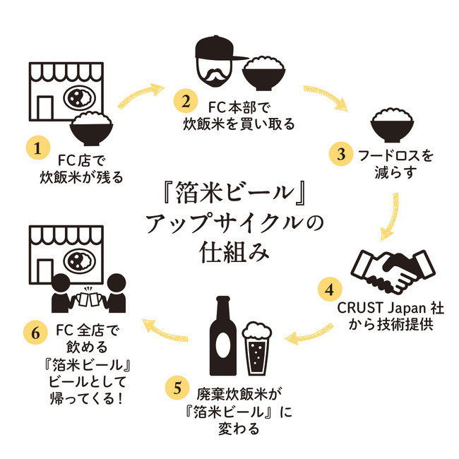 2・アップサイクルの仕組み 〜FC店で残った炊飯廃棄米を本部が買取しビールに変える〜