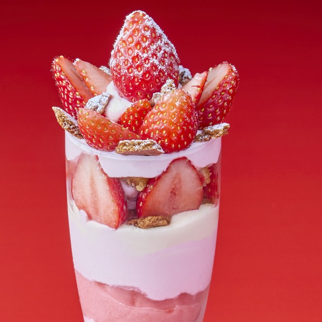 ストロベリー&チーズケーキパフェ グラハムクッキー ピーカンナッツ ホイップベリークリーム ストロベリーソルベ