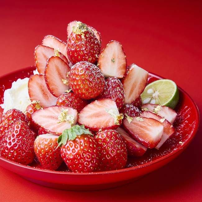 名だたるシェフたちから“いちごの神様”と称される栃木の野口圭吾さんが手がける“赤の宝石”を敷き詰めた和風いちごスイーツ。フランボワーズ入りの甘酸っぱいこし餡と毎朝お店でつくお餅がフレッシュないちごを引き立てます。