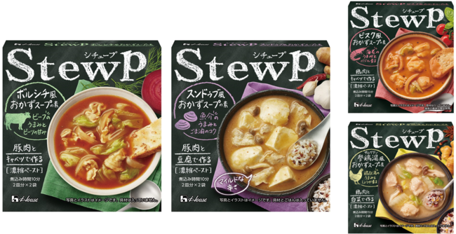 ハウス食品は、シチューとスープを掛け合わせた“おかずスープの素”「StewP〔シチュープ〕」シリーズより新アイテム<ボルシチ風おかずスープの素><スンドゥブ風おかずスープの素>の2品を、2月14日よりスーパーなどで発売します。献立のお悩みに応えるため、普段ご家庭ではなかなか作れないようなメニューのアイテムを増やしました。身近な食材で手軽に作れて、汁物であってもおかずになる食べ応えがあるシリーズです。2皿分×2袋、オープン価格(税別参考小売価格280円)。