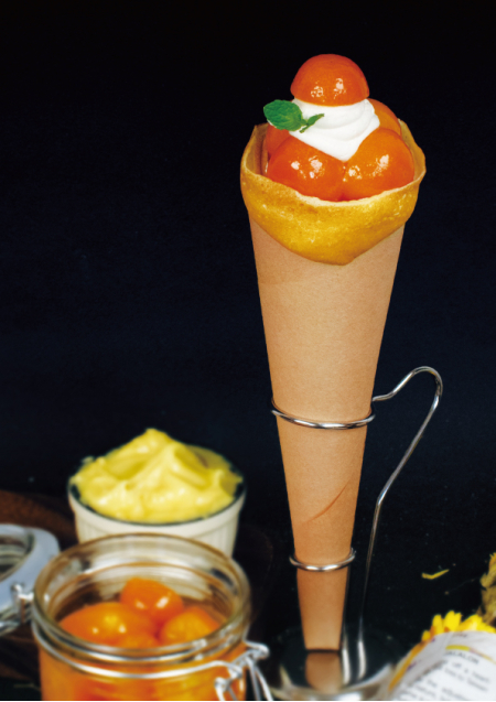 旬の金柑を蜂蜜に漬け込み、濃厚なカスタードクリームを合わせた贅沢なクレープです。
