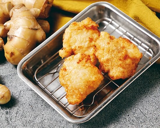 ヘルシーだけど満足感のあるむね肉に、甘み・旨みの強い九州醤油をベースに、おろし生姜をたっぷり使用。一口食べれば、口の中にさわやかな生姜の風味が広がります。