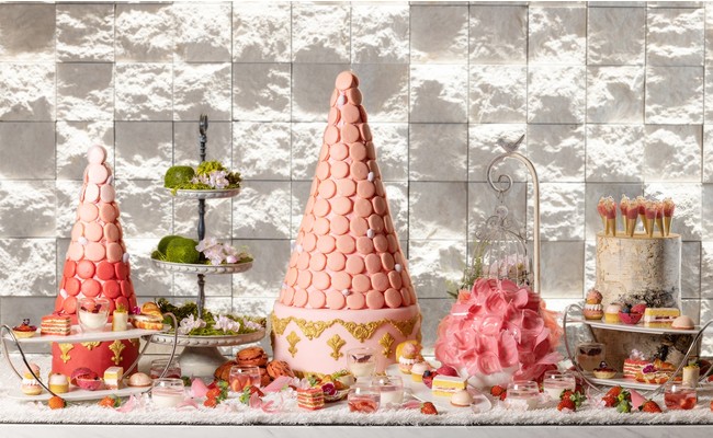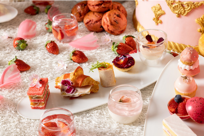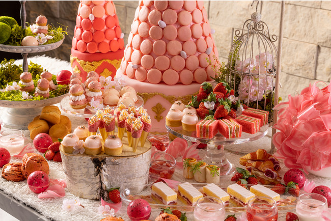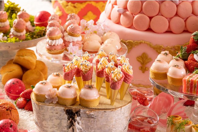 ピンクのドーム型も可愛らしい、タルトレットやムースのほか、ブティックでも毎年大人気の桜のブランマンジェもミニサイズでお楽しみいただけます。旬のいちごともふんだんにつかい、桜の豊潤な香りやいちごのフレッシュさがどちらも楽しめる豪華なアフタヌーンティーです。ピンク一色で華やかなフォトスポットにも注目です。春爛漫な雰囲気のアフタヌーンティーで春の到来をお祝いする午後のひと時はいかがでしょうか。
