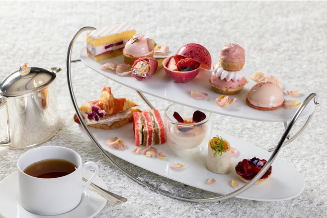3月からは春爛漫な雰囲気のピンク一色で華やかな桜といちごのアフタヌーンティーをご用意いたします。シューとクリームが絶妙にマッチして口当たりも滑らか、とご好評のルリジューズは、桜のクリームが香る、上品な仕上がりに。ピンクのドーム型も可愛らしい、タルトレットやムースのほか、ブティックでも毎年大人気の桜のブランマンジェもミニサイズでお楽しみいただけます。今回注目の新作スイーツ「サプライズ」は、バニラアイスクリームとベリーを詰めたホワイトチョコレートの球体の上から、温かいソースをおかけしてご提供いたします。ピンク一色で可愛らしいフォトスポットも登場いたします。春うらら、心温まる気持ちになるピンクのアフタヌーンティーをご堪能ください。
