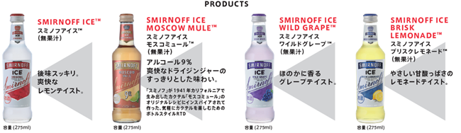 また、「スミノフアイスTM」は世界90カ国以上で飲用されているRTD*2ブランドで、日本国内のびん入りのRTDにおいてもシェアがNo.1*3になるなど、国内外で多くのお客様に支持されています。