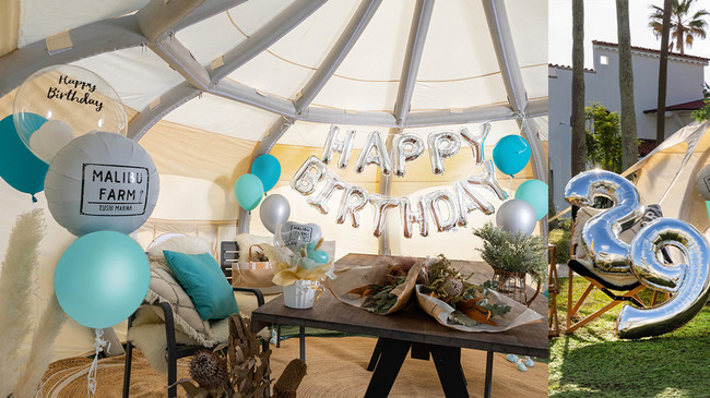 記念日やお祝いにも最適なアニバーサリーコーディネートが今シーズン新たに登場しました。コロナ禍で大人数でのお食事やパーティーを安心して気軽に行うことが難しい状況が続いていますが、ご家族や気心知れたお仲間との時間を大切にできるよう、マリブファームでは優しい潮風を感じながら安心して楽しめる、オープンエアでプライベートなお祝い空間をプロデュースいたします。カマクラテラスを彩るバルーンデコレーションをお楽しみください。