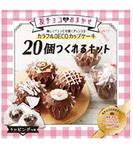 商品特徴:カップケーキ型やトッピング、ラッピング材がセットになった、チョコマフィンが20個作れるキットです。