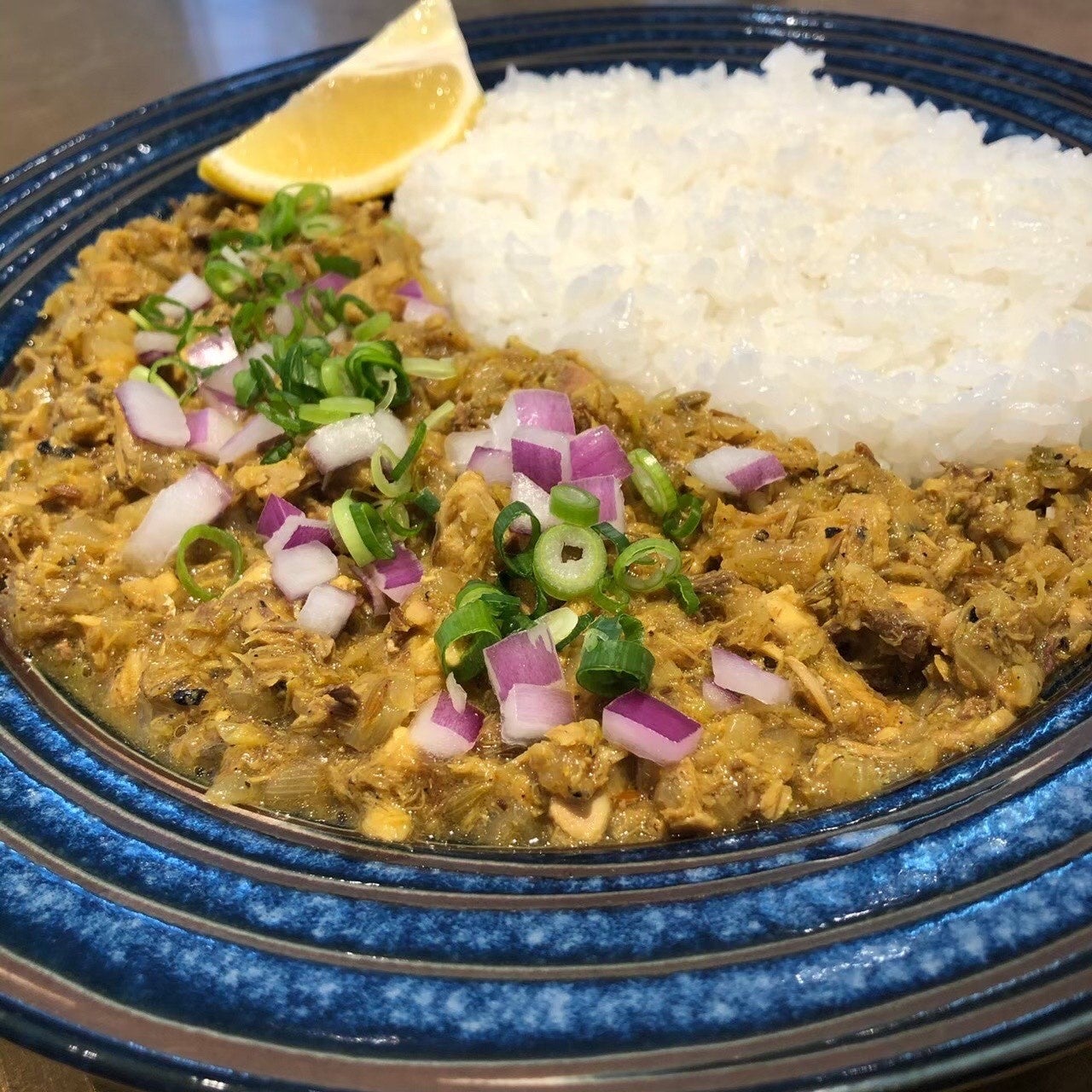 鯖カレーは、国産の鯖を焼いてほぐしたもと鯖水煮缶を汁ごと使い、9種類のスパイスのほか、鯖を引き立たせるかつおだし、玉ネギと、長ネギを加え、鯖の旨みを感じるカレーに仕上げています。スパイスも効いているけれど鯖の存在感が半端ない、それでいてさっぱり食べられる、唯一無二の看板メニューです。