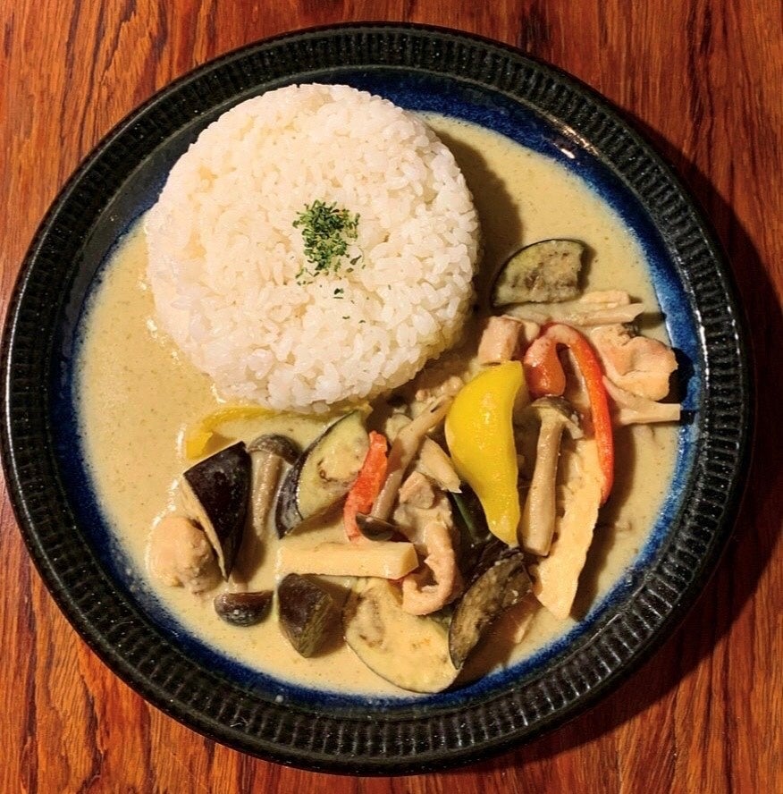 タイで人気のグリーンカレー。ココナッツベースで、辛味とまろやかさがクセになる逸品です。隠し味に白味噌や和風出汁を加えて、和のテイストも加えたカレー