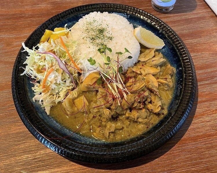 アサリの貝出汁を効かせた旨味あふれるカレー。筍のサクサク食感がアクセントになる海鮮カレー