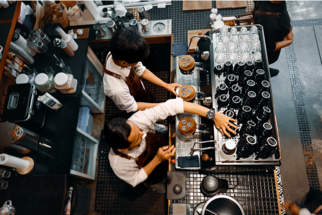 - 複数スタッフがコーヒーを抽出する店舗での活用