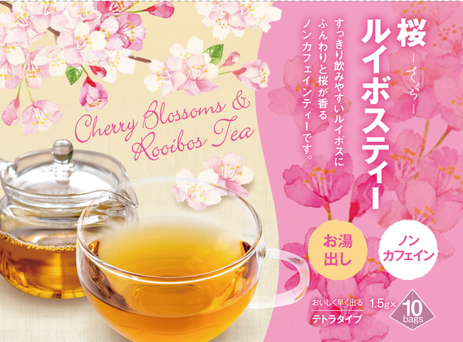 期間:1月31日(月)~3月6日(日)南アフリカ特産のレッドルイボスに、ほのかな桜の香りをつけたカフェランテのオリジナル商品。夜寝る前やカフェインが気になる方におすすめのノンカフェインティーです。入試や卒入学シーズンに桜の香りをたしなんでいただけるほか、自宅でゆったりと花見気分を味わっていただけます。
