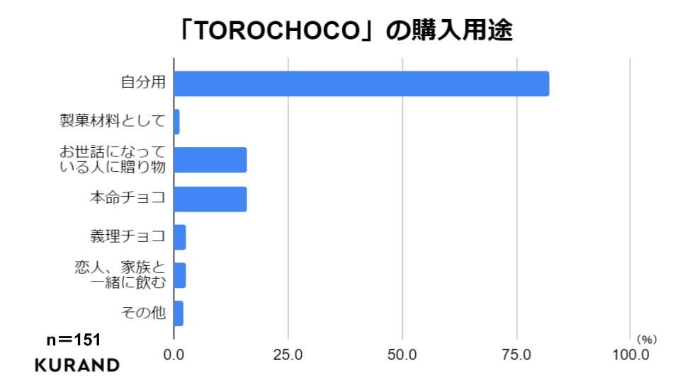 2021年の「TOROCHOCO」購入者対象のアンケートでは、回答者全体の82.1%が”自分用”で購入したと回答しています。ある調査では、コロナ禍で義理チョコを贈る方が減少し、バレンタインは贈答用から自分用として、”自分へのご褒美”に購入するという方が増えていると言われていますが、「TOROCHOCO」も8割以上の方から”自分用”に選ばれています。