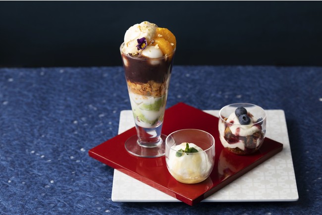 伝統文化が根付く七尾市にピッタリ!イベント限定の和風パフェをご用意。抹茶のパンナコッタ、つぶあん、白玉に、能登の塩を使用した「塩ジェラート」を合わせました。石川県の名産「金箔」も添えた、贅沢な一品をぜひご堪能ください。