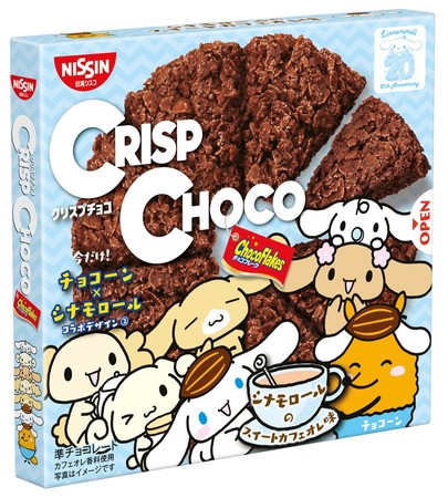 今回発売する「クリスプチョコ シナモロールのスイートカフェオレ味」は、株式会社サンリオの人気キャラクター「シナモロール」とコラボした「クリスプチョコ」の期間限定商品です。