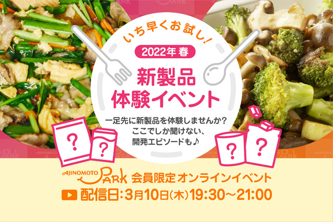 味の素株式会社(社長:西井 孝明 本社:東京都中央区)は、当社の食の情報サイト「AJINOMOTO PARK」にて2022年3月10日(木)に開催される「いち早くお試し!2022年春 新製品体験イベント」の参加者を募集しています。