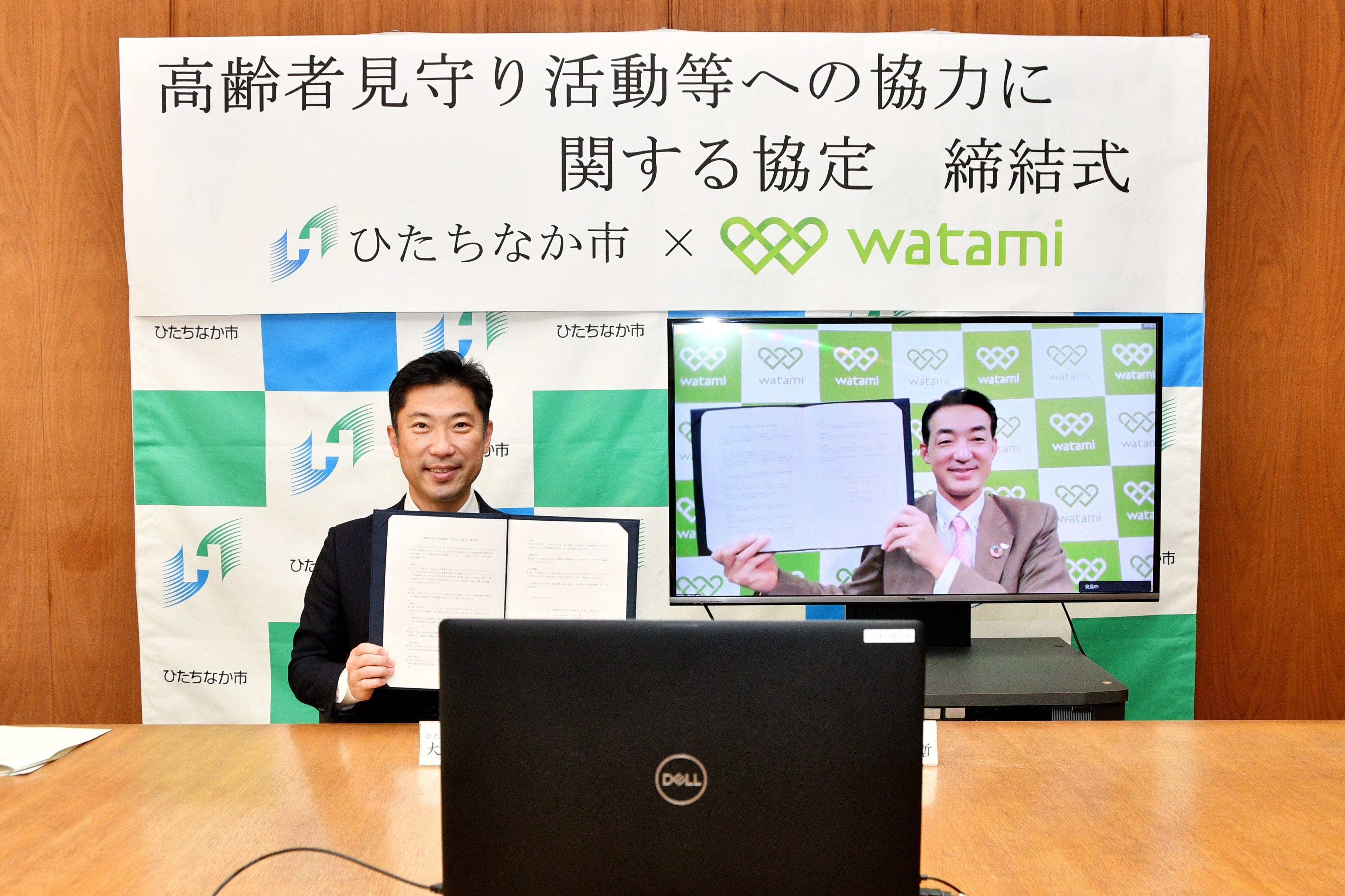 ひたちなか市(市長:大谷 明、以下「ひたちなか市」)とワタミ株式会社(本社:東京都大田区、代表取締役社:渡邉 美樹、以下「ワタミ」)は、1月28日、「高齢者見守り活動等への協力に関する協定」を締結し、リモート会見形式で締結式を行いましたので、お知らせいたします。ワタミが自治体と連携して、地域見守り協定を締結するのは全国で238件目となります。