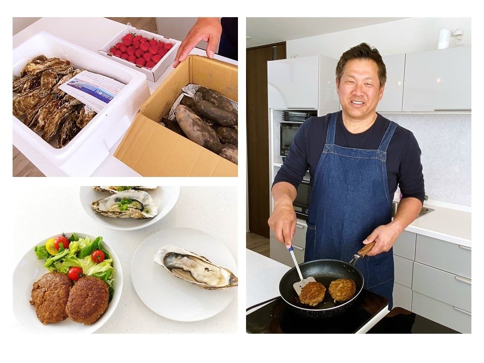 山﨑武司が現役時代、主に活躍された中日ドラゴンズと東北楽天ゴールデンイーグルスにゆかりある土地“愛知県”と“宮城県”の食材3種類を使用し、「レンコンハンバーグ」・「牡蠣の酒蒸し」「生牡蠣」・「いちご」の4種類を調理・試食しました。