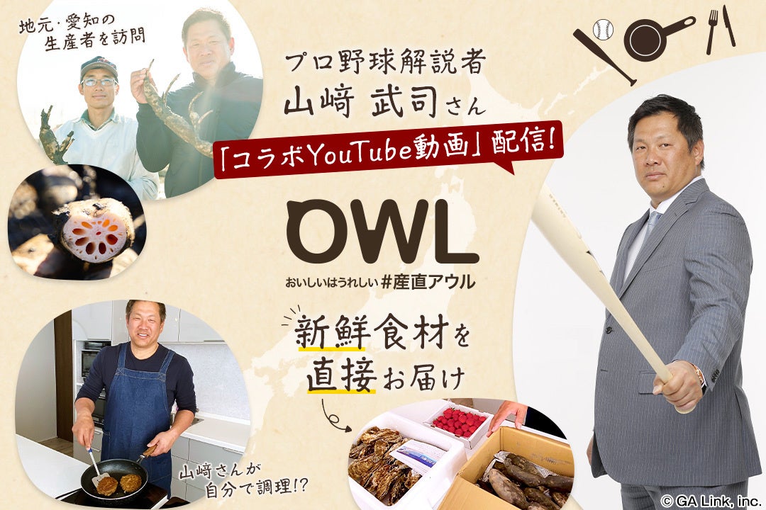 農畜水産物の産直サービス「OWL(アウル)」(以下「産直アウル」、運営:レッドホースコーポレーション株式会社)は、中日ドラゴンズ・東北楽天ゴールデンイーグルスを中心に活躍・現在は野球解説者として活動中の山﨑武司が運用するYouTube「山﨑武司チャンネル」と当社が運用するYouTube「産直アウルチャンネル」にてコラボした動画コンテンツをそれぞれのYouTubeチャンネルにて、2月1日(火)10:00より、一般消費者向けに公開します。
