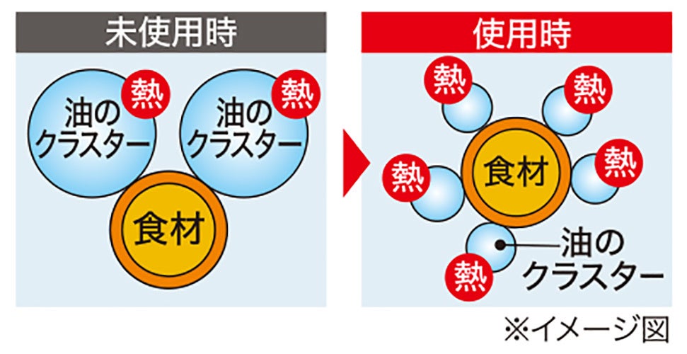 ナノプラチナの抗酸化効果で、油の酸化を抑え、遠赤外線パウダーが入ったセラミックスで油の粒子が細かくなり、揚げ物がサクッと揚がります。