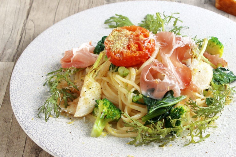 ◆冬野菜とイタリア産生ハム、ローストトマトのオイルソース