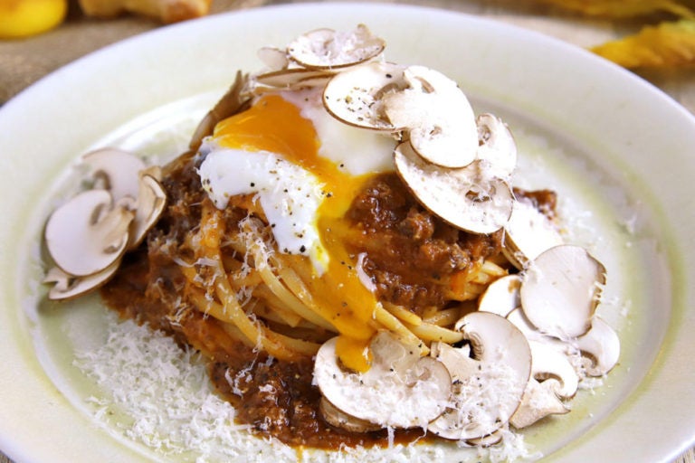 ◆じっくり煮込んだ淡路産牛と六甲マッシュルームのボロネーゼ 半熟卵添え