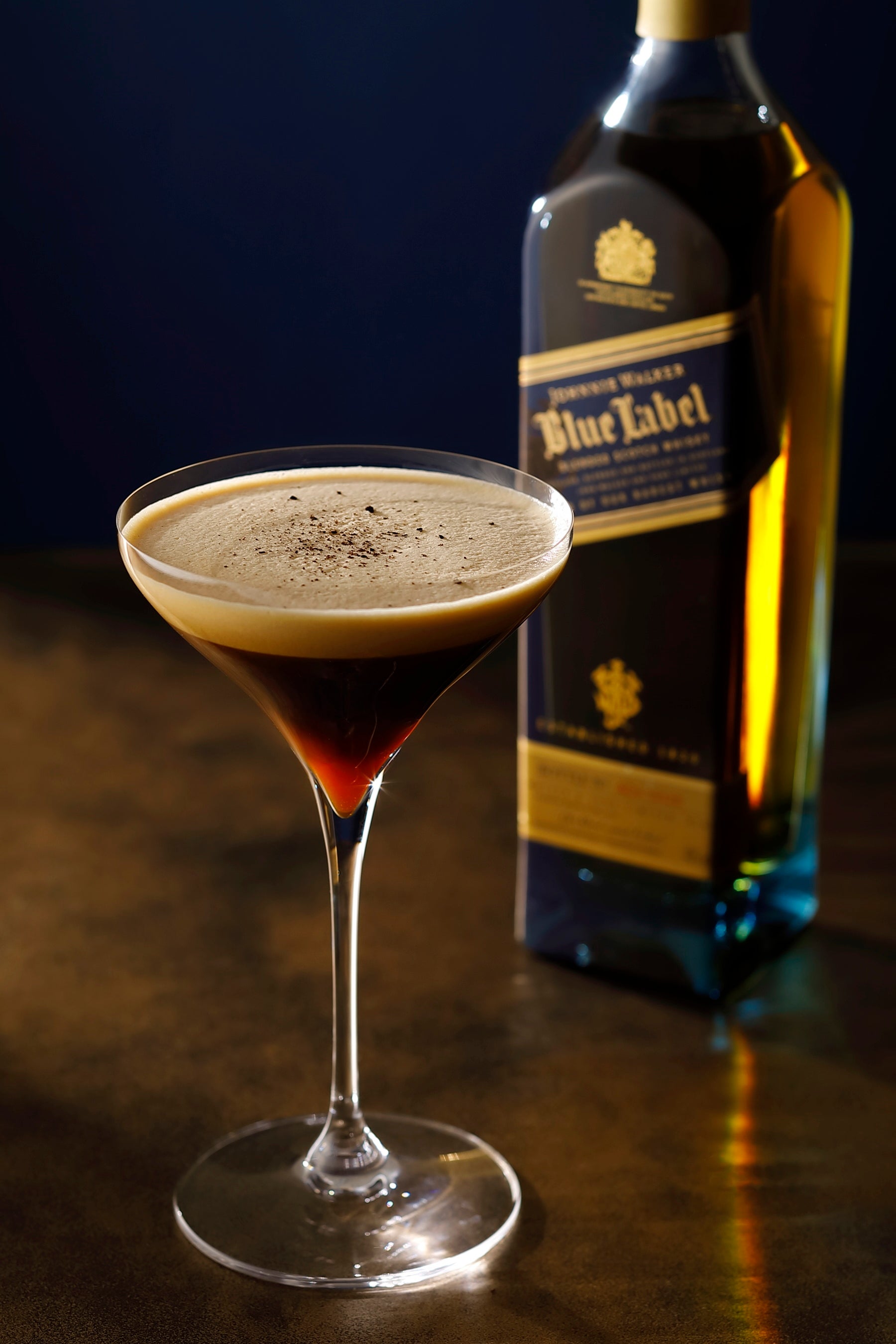 本来ウォッカをベースに作るところを「ブルーラベル」にすることで、コーヒーの香りとブルーラベル原酒の樽由来の香ばしい香りがマッチし、心地よい余韻を長くお愉しみいただける一杯に。しっかりとシェークすることでフォームを作り、柔らかいテクスチャーに仕上げました。