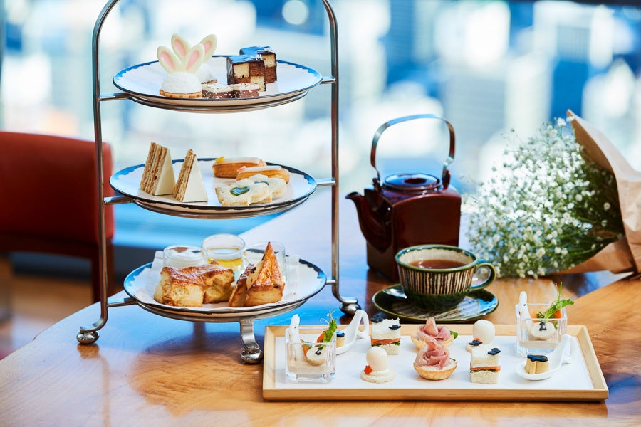 最上階、52階に位置するルーフトップ バー内トライアングルエリアでは、毎年好評の桜ガーデンを今年も開催いたします。柔らかな春の風を感じる、穏やかな季節にぴったりの『桜』をテーマにしたアフタヌーンティーをお楽しみください。セイボリーでご提供する桜海老とビーフパティのミニバーガーは、オリーブオイルでソテーしたサクサク食感の桜海老が香ばしく香る、春満載のハンバーガーです。スモークトラウトと春野菜のプレッセは、スモークした鱒と、春キャベツ、紅芯大根、菜の花などの春野菜を使った色彩豊かな美しいミルフィーユ仕立ての逸品です。添えられたピンク色の艶やかなトマトのジュレが華やかさを演出し、春の訪れを感じさせてくれます。桜タルトレットは、桜風味のチーズタルトをたっぷりのピスタチオパウダーが覆う、丘の上に咲く桜の木をイメージしたシェフの繊細な技が光るビジュアルも楽しいスイーツです。桜スコーンは、桜の葉の塩味と自家製桜エッセンスの甘さが絶妙に合わさったシェフのオリジナルです。地上約250mに咲き誇る桜の木と、東京タワーを望む絶景を一度に楽しめるプレミアムなスポットにて、春の訪れを心ゆくまでお楽しみください。