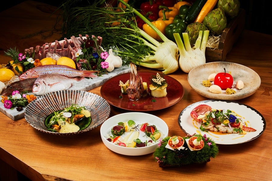 ザ タヴァン グリル&ラウンジでは、南仏プロヴァンス地域の伝統料理をベースに、豊富な魚介類やこだわりの仔羊を用い、シェフのアレンジを利かせたオリジナリティ溢れる料理をコース仕立てでご用意いたします。前菜の鮪の赤身グリルは、表面を炙り旨味を閉じ込めた鮪にエストラゴンマスタードで、刻んだディル、セルフィーユ、イタリアンパセリなどを纏わせ、新鮮な魚の旨味の中にも爽やかなハーブが香る、モダンなテイストの逸品に仕上げました。メインディッシュには、鮮度の良い仔羊を骨付き背肉(ラムチョップ)のグリルとスネ肉の煮込みの2つのスタイルにてご提供いたします。ラムチョップはロースの中心部分にミントの葉を埋め込み一緒にグリルすることで、ジューシーかつさっぱりとした味わいに。スネ肉はブイヨンでじっくりと柔らかく煮込んだ後、チーズと合わせオーブンで絶妙な焼き色を付けて仕上げます。柔らかくホロホロとしたお肉と濃厚なチーズのハーモニーをご堪能ください。新鮮な食材を最大限に生かした、春の訪れを感じさせる鮮やかな色彩の期間限定メニューをこの機会にぜひご賞味ください。
