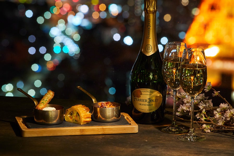 華やかに香るペリエ ジュエとシェフ特製カナッペのマリアージュを、地上約250mでの夜桜を満喫いただきながらご堪能ください。