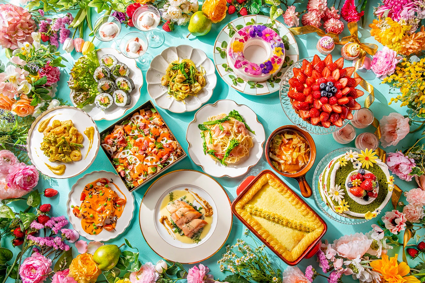 うららかな春の訪れとともに彩り豊かな旬の食材を使用したメニューが登場します。菜の花、筍、桜海老など春を代表する食材の魅力を活かしつつ、今まで体験したことがないような風味や食感の組み合わせで楽しめる多彩なメニューを約30種類ご用意しました。1月より好評を博している千葉県山武市の「相葉苺園」の採れたて苺を継続して入荷しグラスサービスで提供いたします。幸せ気分を盛り上げるストロベリースイーツも春の装いでご用意しております。